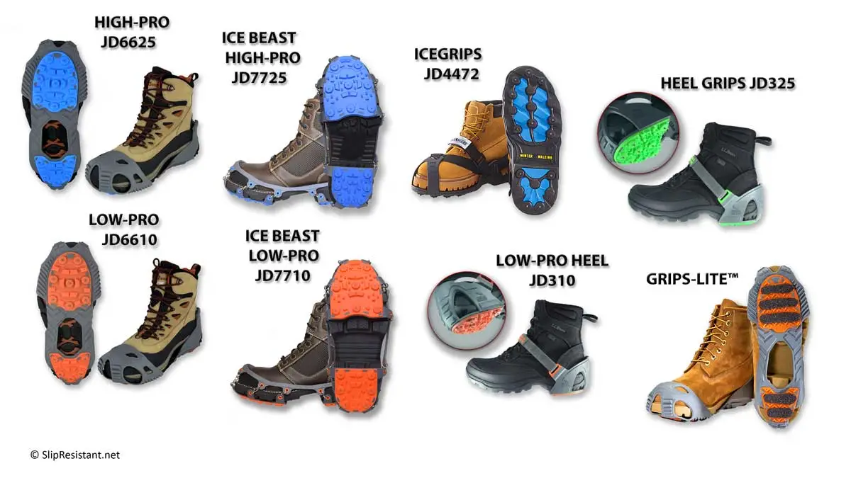 Lastly, if you're constantly driving and going in and out of doors and not restricted from wearing full-sole ice cleats, I recommend Winter Walking LOW-PRO Ice Cleats with Transitional Traction™.Strap-on heel ice cleats serve double duty.